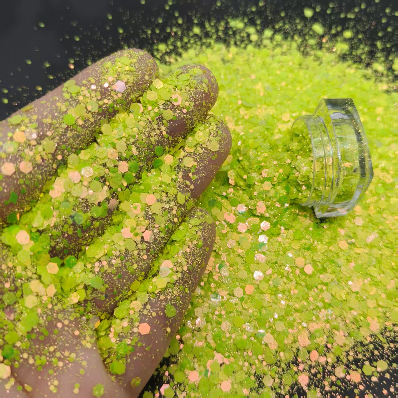 Made with skin-safe, cosmetic-grade materials, our glitter is ultra-fine, non-toxic, and cruelty-free – perfect for projects that need a safe, high-quality sparkle.